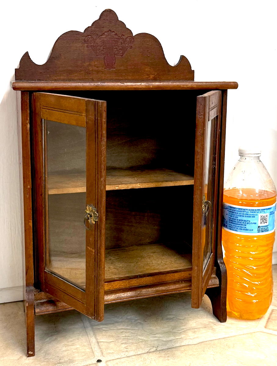 Miniature Antique Wooden Tabletop Cabinet or a Small Curio Cabinet Likely